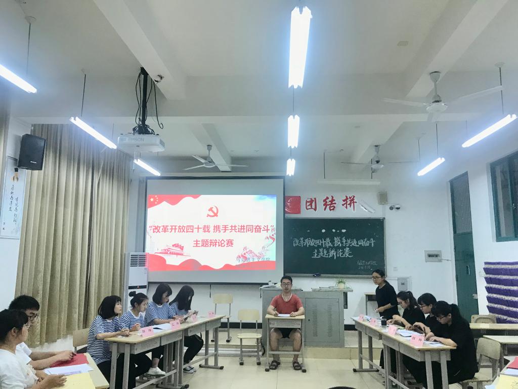 2017年5月15日晚,由马克思主义学院举办的“改革开放四十载,携手共进同奋斗”辩论赛在求真楼C302教室隆重举办。马克思主义学院副院长郑常鳜、团委书记张芳老师、黄玉桃老师和马克思主义学院2017级全体学生参加活动。
