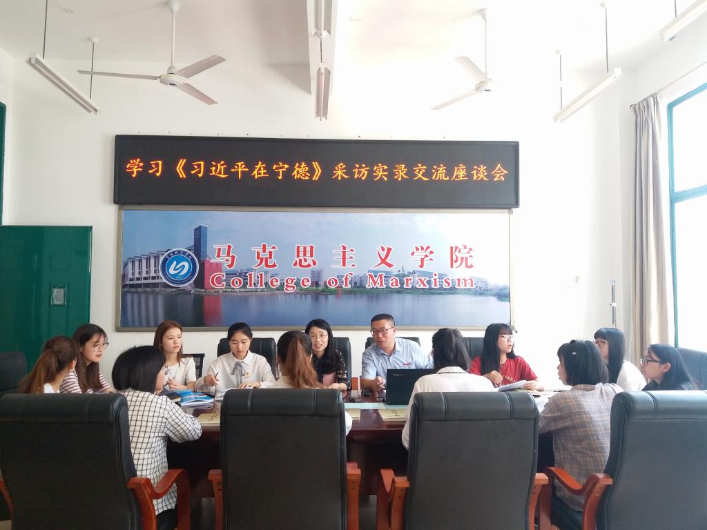 5月23日,马克思主义学院师生在求知楼B区205会议室召开学习《习近平在宁德》采访实录座谈会,大家结合自身学习,畅谈心得体会。
