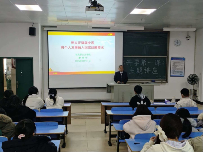 为精准指引思想政治教育专业学子明晰职业发展方向、厚植家国情怀与育人担当,扎实推进新学期就业指导专项工作,上好就业育人“开学第一课”,3月13日下午,马克思主义学院党委书记廖翔华为全院学生开展题为《树立正确就业观将个人发展融入国家战略需求》的“开学第一课”主题讲座。