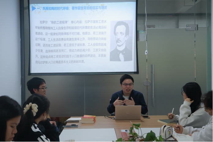 马克思主义学王鑫同学分享:“参与本次读书沙龙分享会,让我对《社会主义从空想到科学的发展》的理论逻辑有了更深刻的体悟。书中清晰阐释了社会主义从空想走向科学的历史必然。通过分析空想社会主义、工人阶级状况,使我们能够更加深刻地理解唯物史观与剩余价值学说的创立过程,打破了我对理论的表层认知。随后,老师以当代案例,让我们更加领悟这篇文章跨越百年的思想伟力。身为思政专业师范生这让我意识到,思想政治教育工作必须以科学理论为根基,只有深刻把握科学社会主义的立场、观点和方法,才能向学生传递正确的理想信念。”