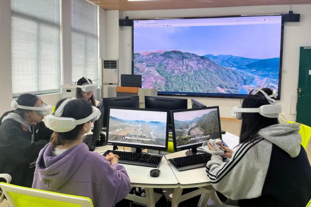 学生在虚拟实践中心操作VR眼镜