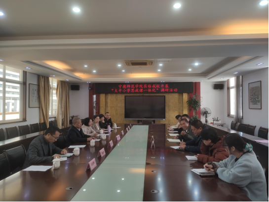 11月20日,马克思主义学院大中小学思政课一体化教学调研组赴福安市开展大中小学思政课一体化教学专题调研,与福安市高级中学、福安德艺学校负责人及一线思政教师展开深度研讨。